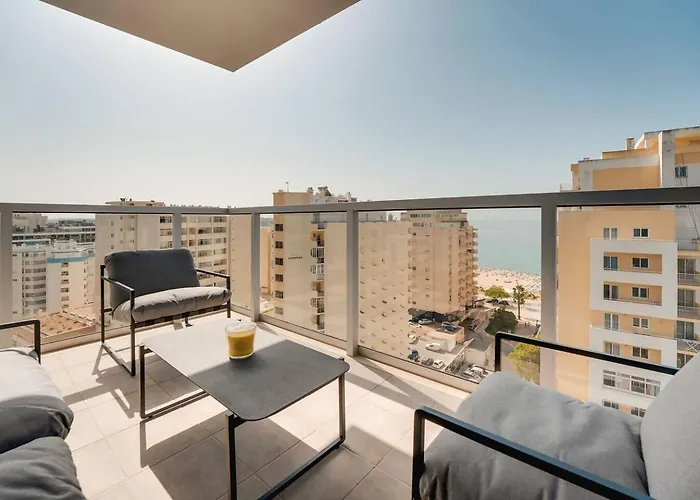 顧客用の台所があります。 Elite Vista Mar - Praia Da Rochaアパートは、 ポルチマン空港から5キロメートルの場所にあります。